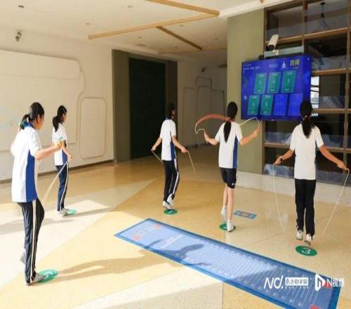 采访当天,正赶上海滨中学每周的“年级体育大课”。校园里处处洋溢着运动的热潮,但凡校园内能运动的空间,都站满了学生,排球、篮球、跳绳、跑步……初三的学生们沉浸在不同项目中不亦乐乎。令人眼前一亮的是,AI打卡的融入,让这场体育大课更具科技感与趣味性。