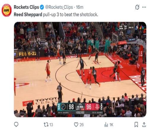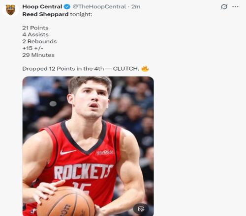 谢泼德末节12分登全美热搜!火箭官方为他鼓掌休媒盼给核心地位