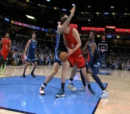 防守选位迟缓被造进攻犯规,协防过度导致不必要的身体接触。横向移动速度偏慢的问题被灰熊针对性利用,多次被对手挡拆后错位单打。