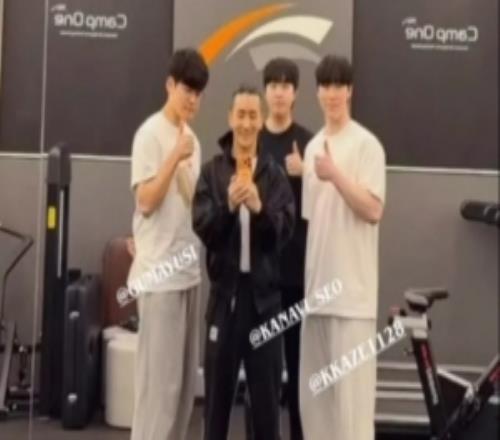 电竞体育12月8报道 健身三人组?健身教练分享与Gumayusi、Kanavi、Zeka合照。