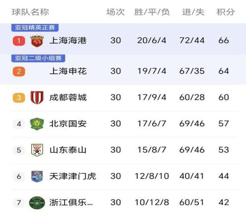 这赛季中超最讽刺的画面,莫过于30轮全部战罢,积分榜前7名竟与上赛季一模一样,连排序都没变动!